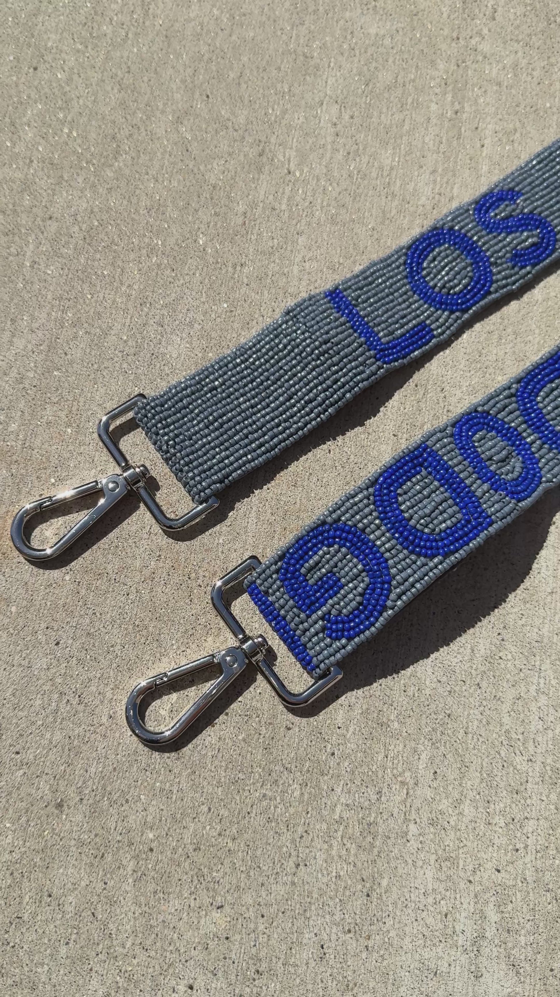 Grey beaded purse strap, silver hardware. Can be attached to purses. Adjustable