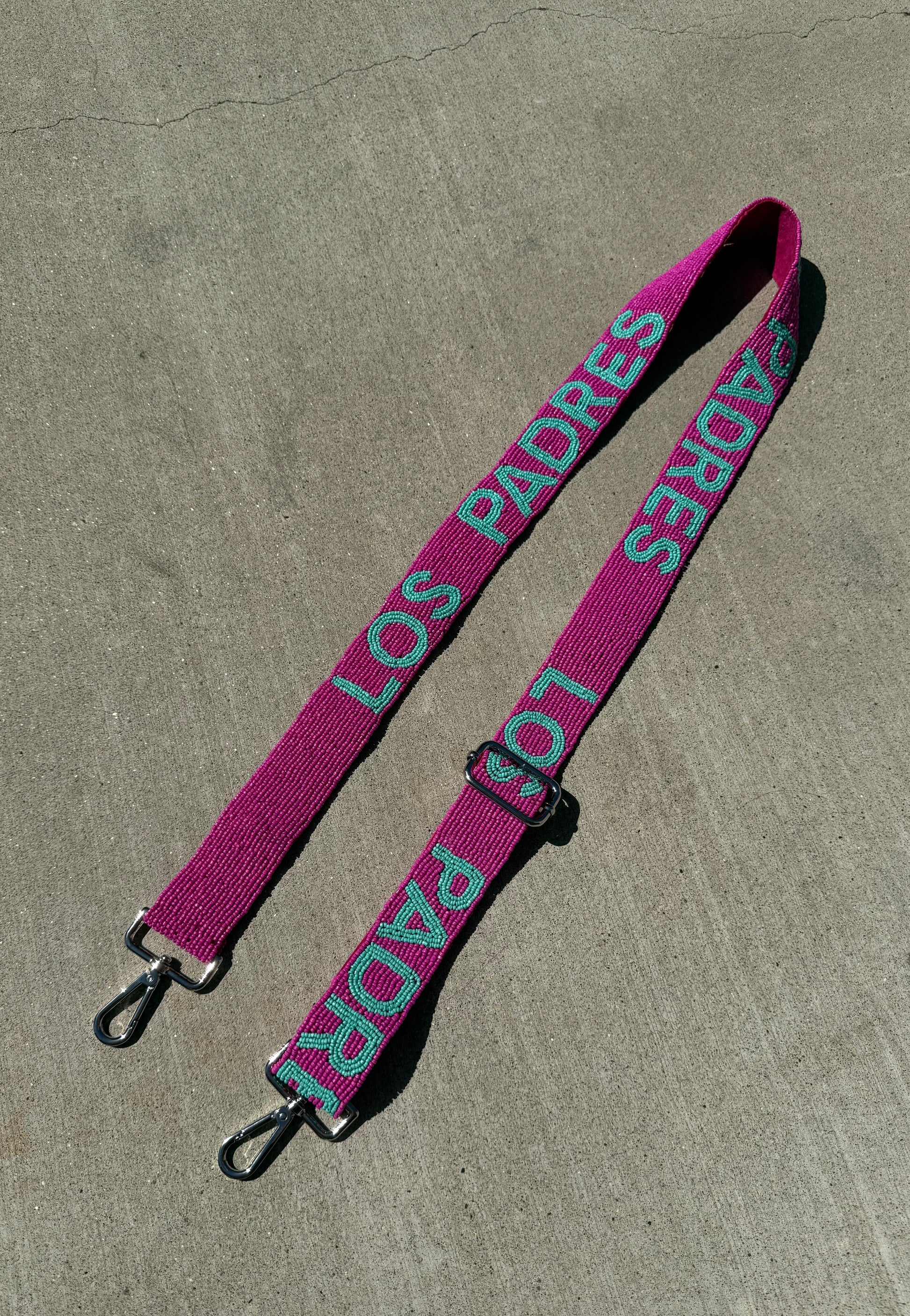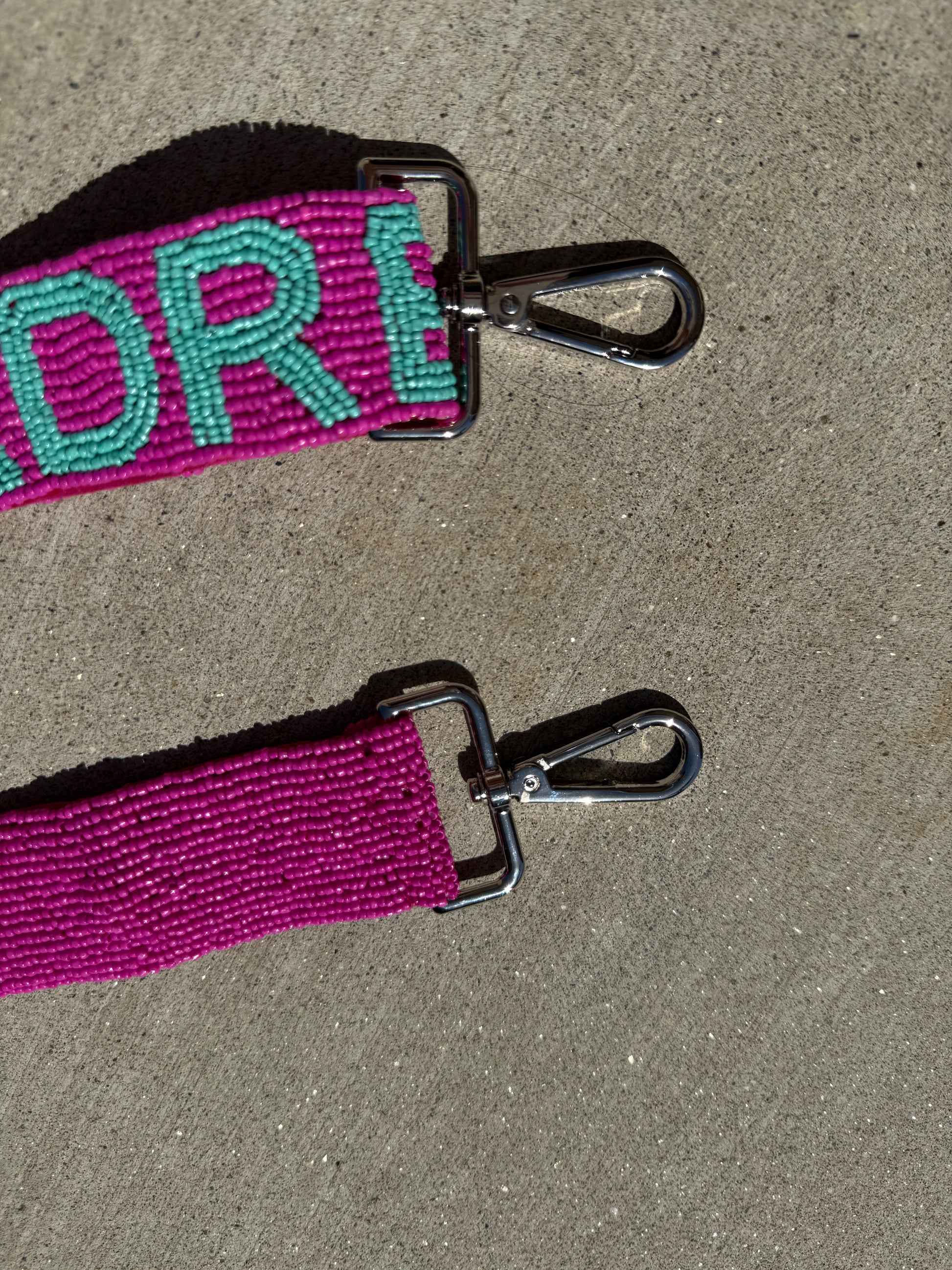 Pink beaded purse strap, gold hardware. Can be attached to purses. Adjustable